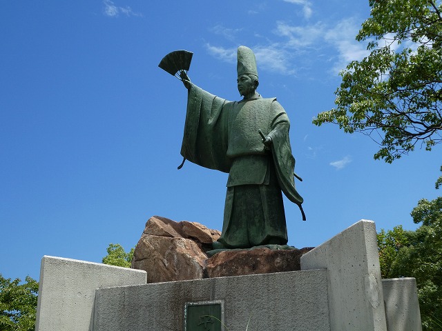 広島県の呉市と倉橋島を結ぶ音戸大橋。呉市側の山の斜面が音戸の瀬戸公園として整備されています。ツツジや桜が咲き誇る公園や砲台など見所いっぱいですが、最も高い場所にある高烏台は一番の見物でしょう。展望台があり、瀬戸内海の島々のほか、好天の日には四国まで見えるとか。いいお天気でしたけど、さすがにそこまで見えませんでしたけど。平清盛像も立っています。清盛は1165年、沈む夕日を招き返した(あり得ないけど)という伝説がありますが、扇を高くかざした姿は日招き像ともいわれています。