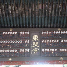 門を潜り抜けるとき上を向いてください。門の屋根下には一番組から十番組の纏札が奉納され火除け祈願されていたと思われますので、見逃さない様に。