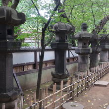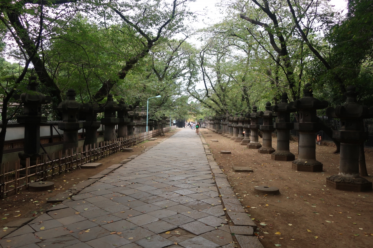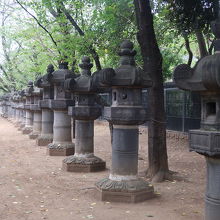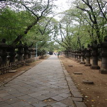 上野東照宮の水舎門を潜り抜けると石畳の敷かれた参道が唐門まで一直線の伸びています。その両側に整然と並ぶ石灯籠はなんと200数基もあります。全国諸大名から奉納されたもので各灯籠の名前が刻まれています。
