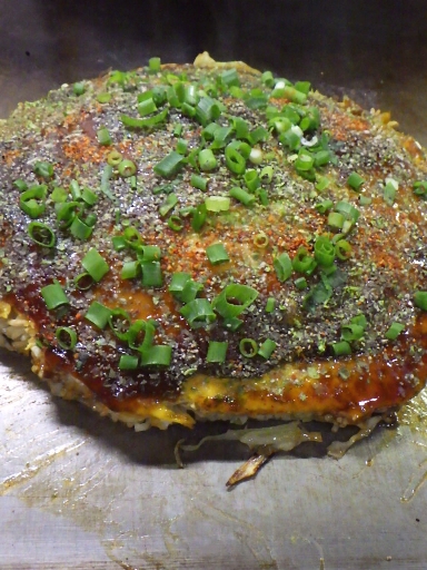 肉玉そば+イカ天は、当店が提供するお好み焼の1種。