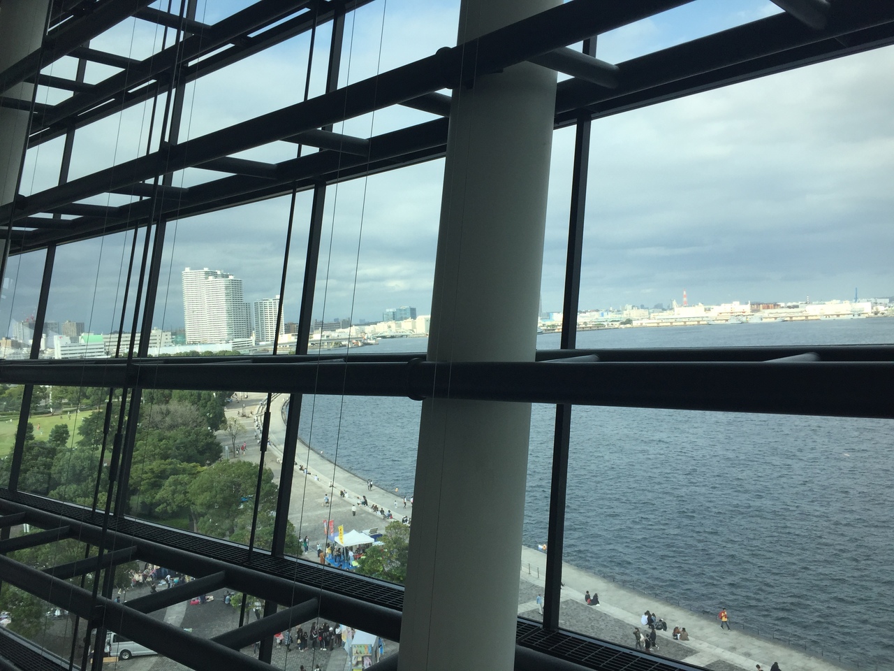 国立大ホールが韓国のグループのWINNERのツアーファイナルの会場でした。会場内の海向きのエントランスから横浜港が一望できます。中はきれいです。2階席より上だと下りのエスカレーターがないので、帰りは階段になるようでした。