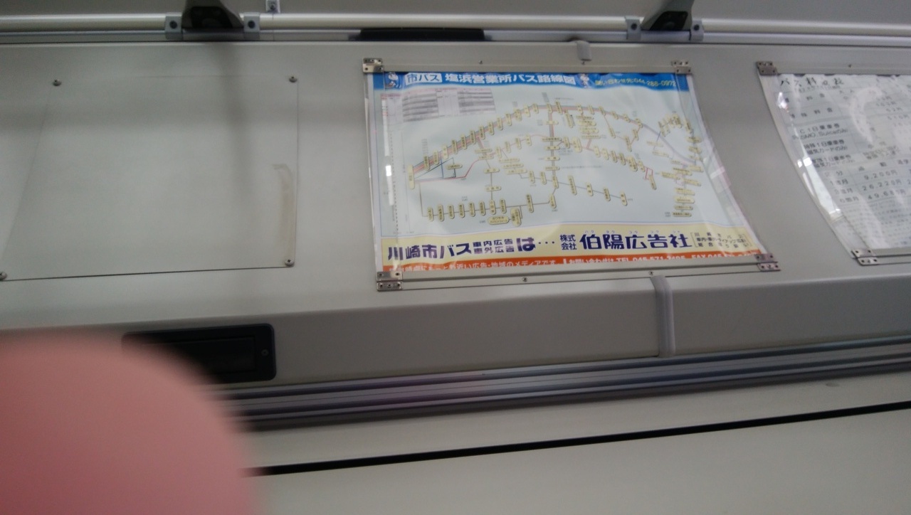 長年便利に利用している川崎市営バスをスマートフォンのアプリの指示に従って駅の1つ先の商店街から扇町行きに乗車しました