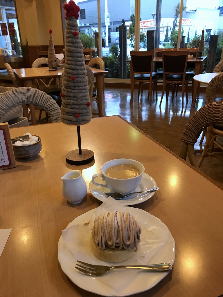 マロンケーキと珈琲を食す。
