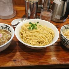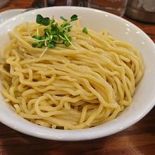 西武線所沢駅構内にあるお店。カウンター中心のお店ですが、奥にはテーブル席もあります。えきなかにあるので、特急の待ち時間等にも利用可。昼は「豚骨×魚介」、夜は「鶏×魚介」と、昼と夜でスープが異なります。昼に行きましたが、スープはかなり濃厚。まぁまぁこってりしています。うどん粉とパン粉を調合したうどんとラーメンの間のような食感(中太とのことですが、見た目も稲庭うどんよりも太いと思う)で、モチモチ感とつるつる感があり、スープによく絡みます。大盛でもペロッといける量でした。ただ、このお店だけのことではないですが、少し高めに感じました。