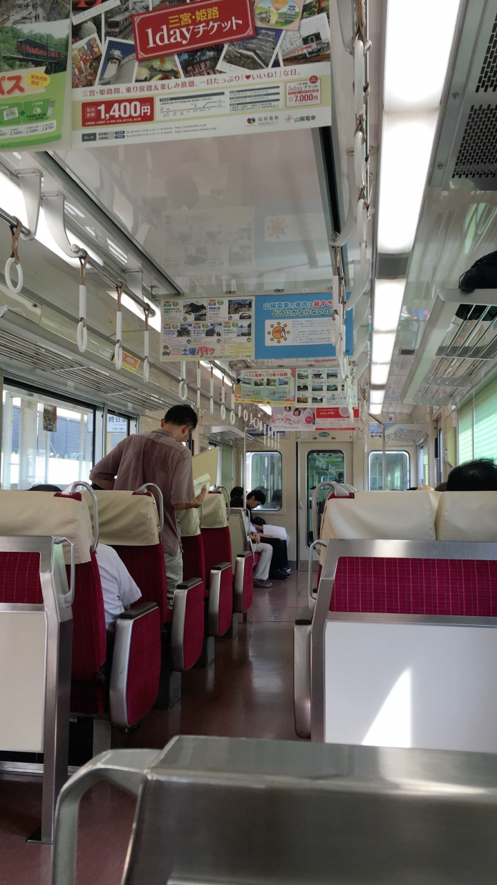 阪神と山陽電車だけでなく、神戸高速鉄道まで直通しているので、直通特急という名前になった直通特急。並走しているJRの新快速にはとてもかないませんが、明石から姫路までは結構早いです。車輌ものんびりしていてわたしは明石よりも西に向かう時はこの電車を使うことが多いです。