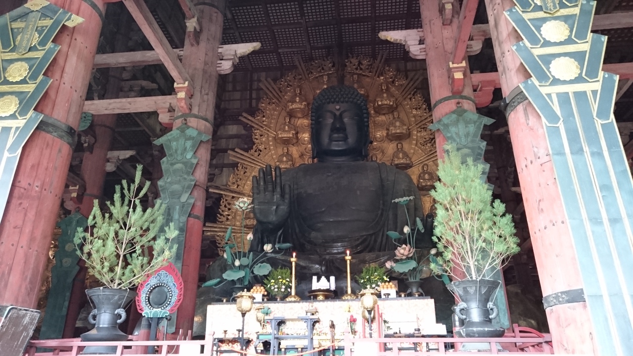 急に奈良の大仏が見たいと思い立ち出発!秋だということを忘れていた、修学旅行生の小学生、中学生がいっぱい。外国人の方も国を問わすにたくさん どこの国の方か入ってはいけない所に入り写真を撮っていた、残念!大仏様は素晴らしい 周りの仏像も初めて見るものばかりで。正倉院も近くにあったので道から見学 何故かここは学生がいなかった、教科書で習う所なのに・・・