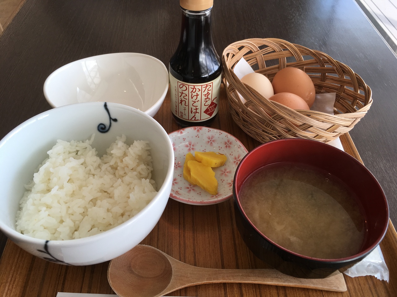 卵かけご飯定食は卵食べ放題、追加で親子丼を注文。卵かけご飯はまず、運ばれて来た時点で3つの卵が付いていました。