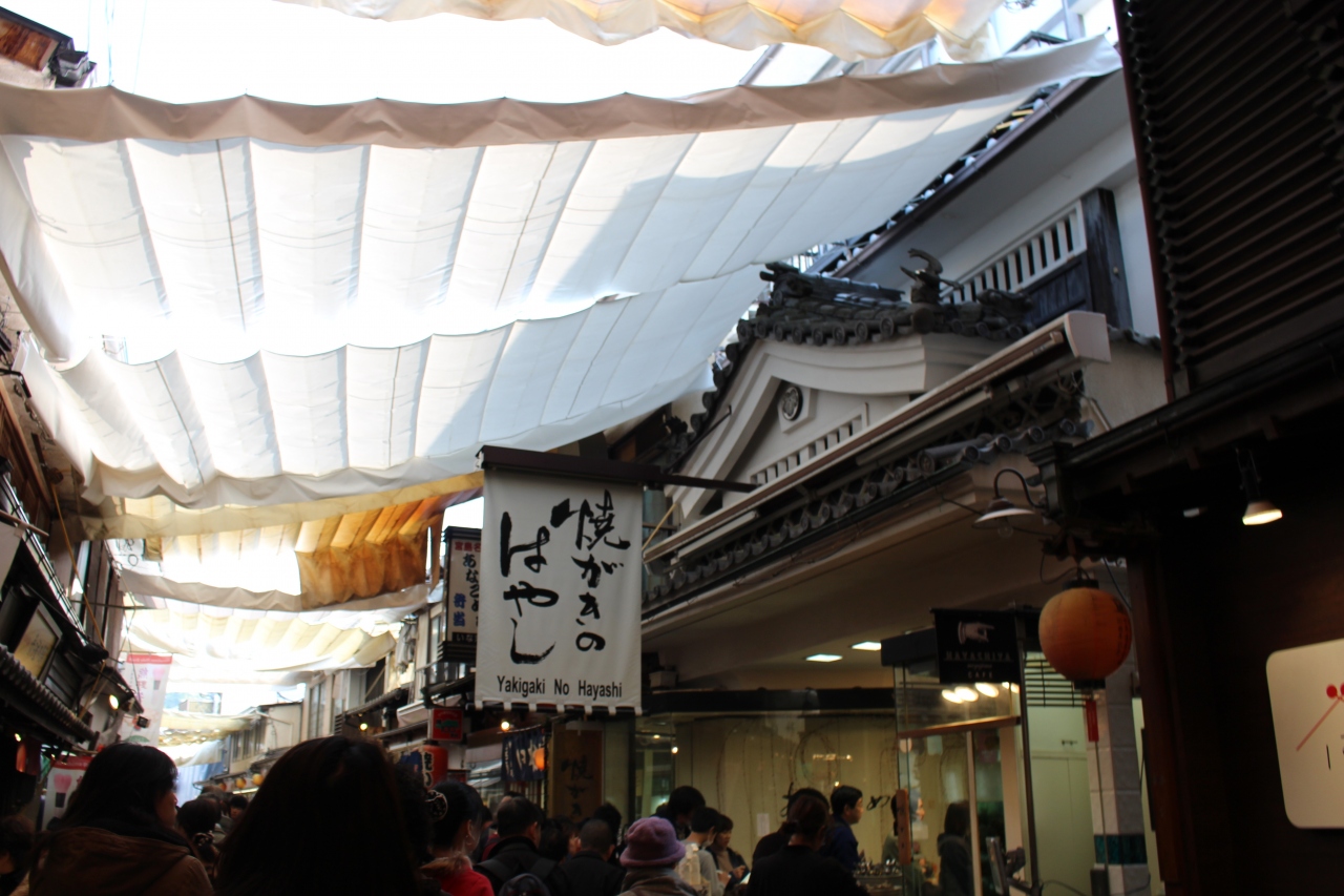 広島県の人気観光スポット、宮島にある商店街です。通称清盛通りといわれています。桟橋から厳島神社へむかう通りにあります。いくつものお店が立ち並び、宮島グルメのあなごめしやもみじまんじゅう、かき料理などが味わえるお店がたくさんあります。お土産やさんもあり、歩いているだけでも楽しくなります。大杓子もあります