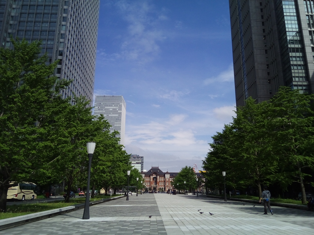 東京駅丸の内側で、皇居方面へ続いている通りです。