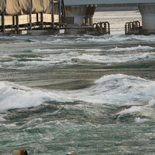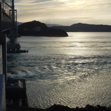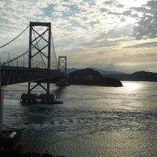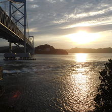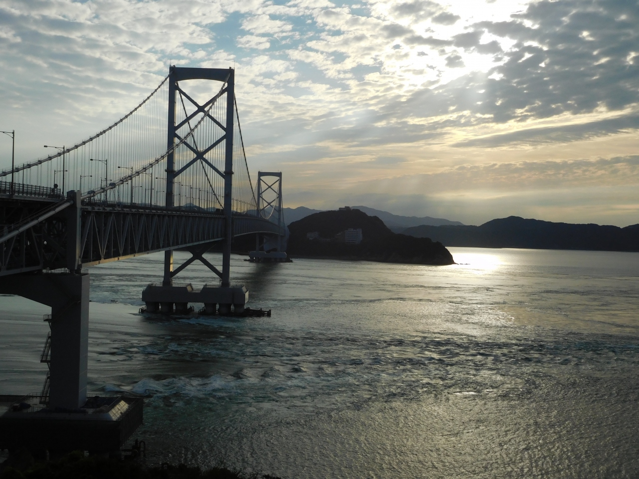 初めて徳島に旅行する事になり、渦潮が良く見られる潮見表で調べたら、ちょうど空港に戻る途中の時間帯で見学が出来そうだったので、「道の駅うずしお」に立ち寄って、「渦潮」を見る事にしました。少し早めの時間に到着し、大鳴門橋の橋脚のたもとまで下りて行ってみました。潮の流れが速い様子はよく分かりましたが、はっきりと渦が出来ている様子は今一確認出来ませんでした。でも、ちょうど夕暮れの時間帯だったので、鳴門海峡の美しい景色が見れて良かったです。