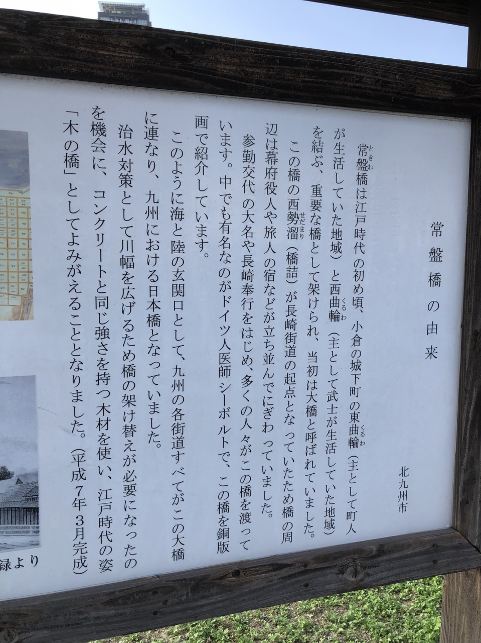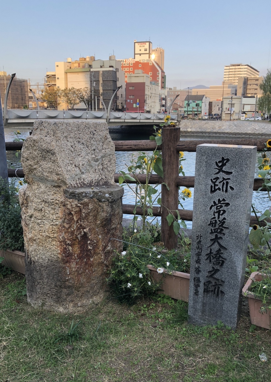 橋の東詰めには伊能忠敬の測量200年記念碑がある。このことは、この常盤橋が九州の街道の要に位置することを意味している。
