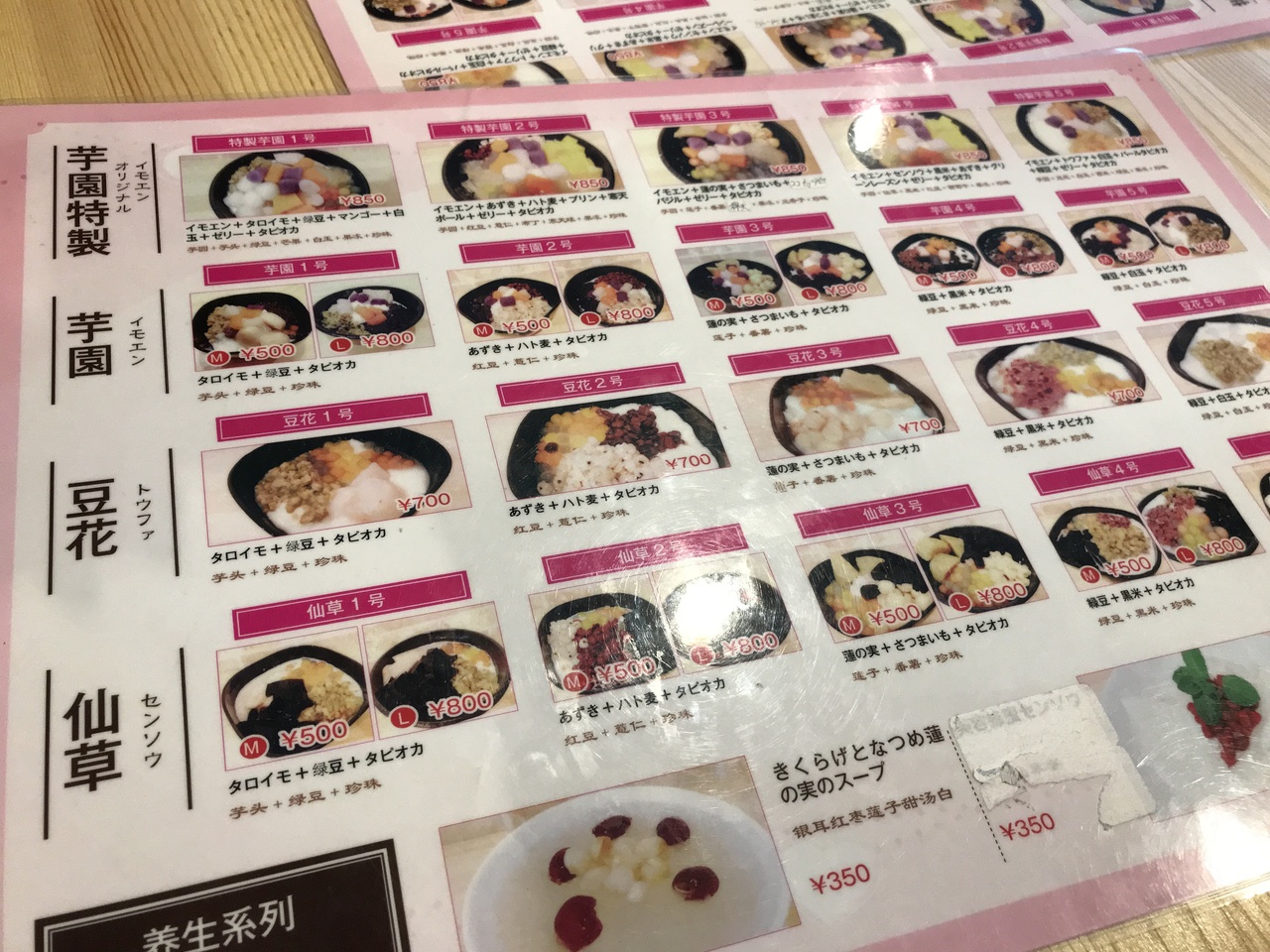 芋園や豆花、仙草の他、タピオカミルクティーもあります。