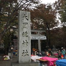 京王線 府中駅南口からケヤキ並木を通って5分ほどで着きます。大きな神社なので圧倒されました。境内には結婚式場や、歴史館、宝物殿などがあります。秋篠宮悠仁さまのお印の高野槙も有りましたよ。なにか行事があったのでしょうか、露店がたくさん出ていました。