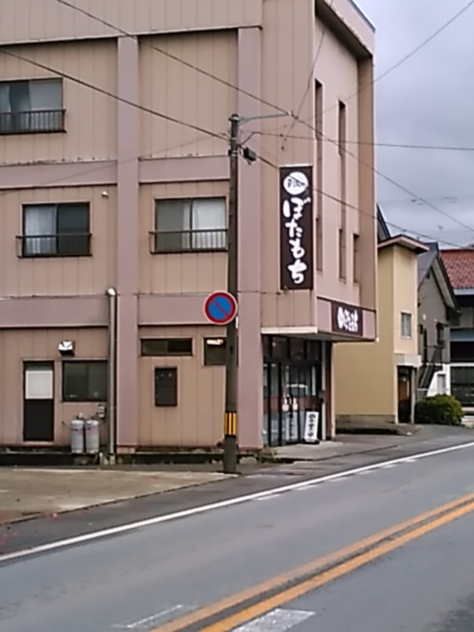 新庄方面から来るとほんと役場の手前にあります。役場の看板を目印にすると間違いありません。その名のとおり、ぼた餅屋さんです。ぼた餅の種類は定番のあんこの他、きな粉、ごまがあります。味は甘さ控えめで大きさも調度良い感じでした。三個くらいはペロッといけます。