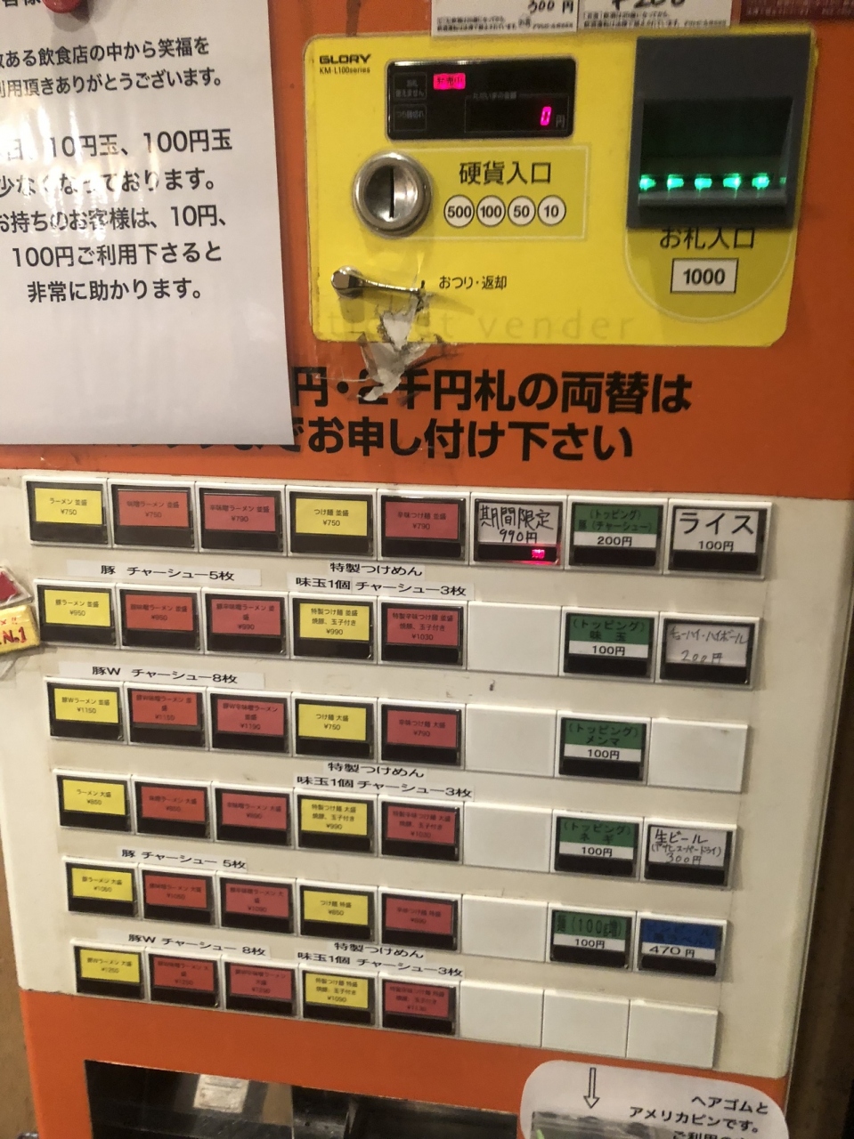 注文の時に、ニンニクの有無を聞かれるので、その時野菜の量をきめる。この日は、閉店間際だったせいか、ちょい増ししか受付できなかった。
