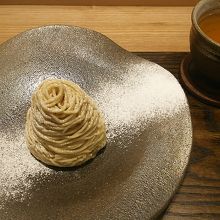 お寿司屋さんのようなカウンターで作りたてのモンブランをいただきます。