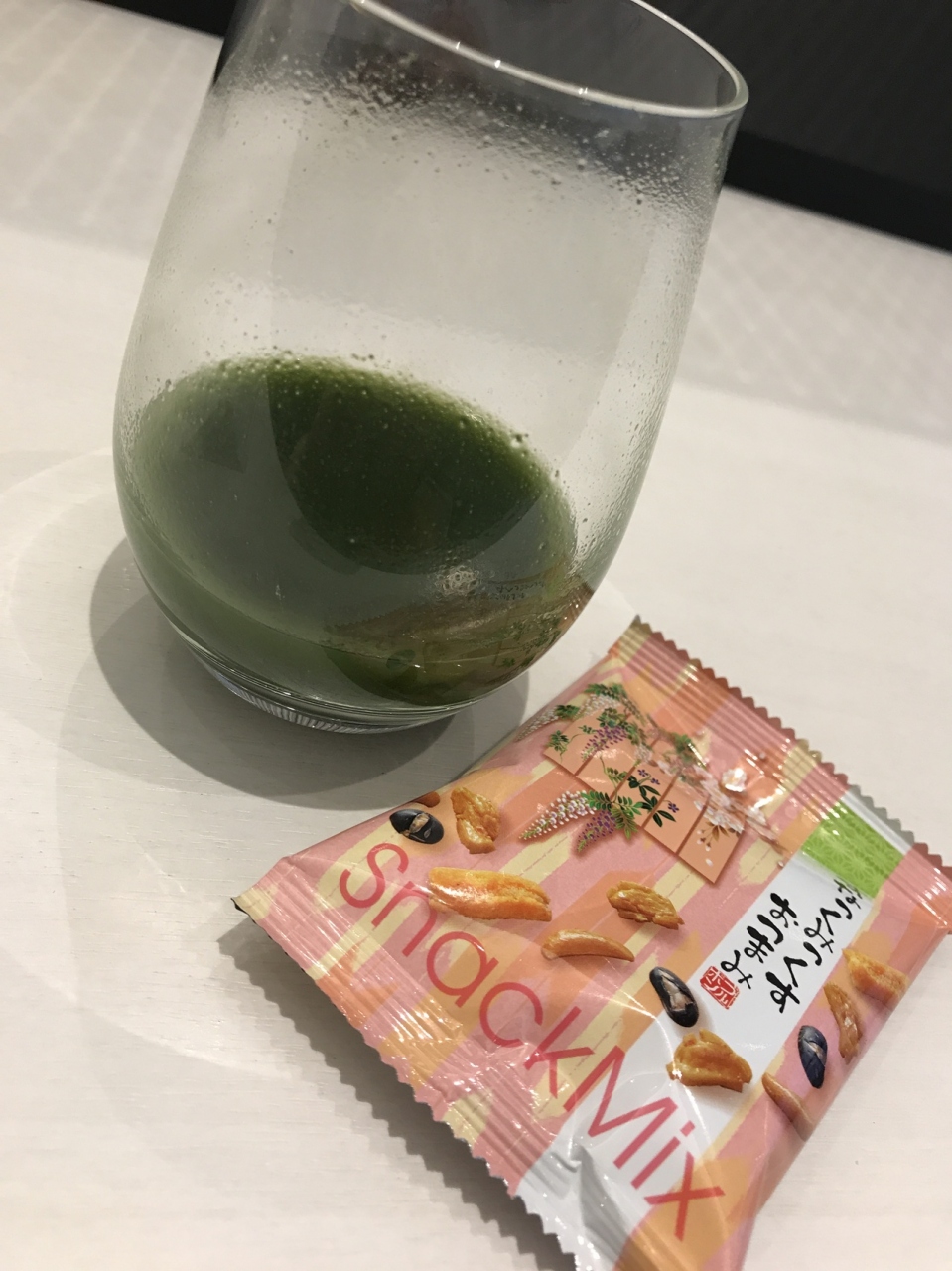 今回ははじめて青汁に挑戦!あれ?!けっこう飲めるじゃん。いつものおつまみ以外のスナックも置いてほしいなぁ~。