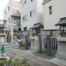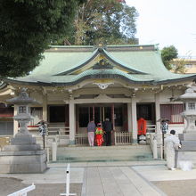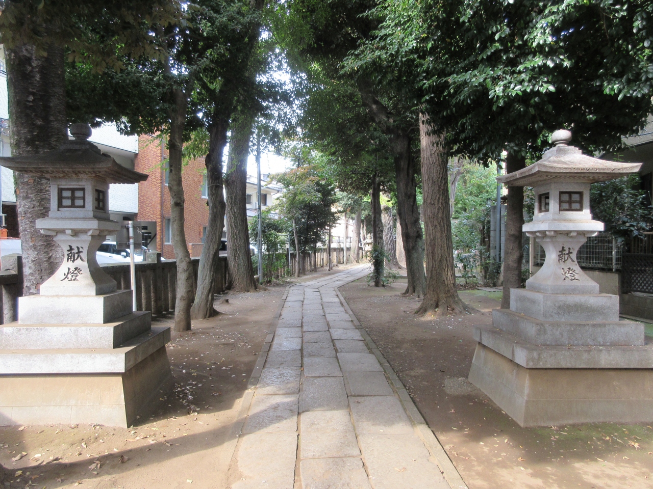 荻窪駅西口の白山通りに面して石造りの鳥居が建っています。1400年代に創建した旧下荻窪村の鎮守です。長い参道にイチョウなどの並木や常夜燈があります。コンクリート造りの本殿に七五三詣りの人がいました。神楽殿横に三峯神社など小さな神社が3つあります。手水舎にあるネコのオブジェから水が流れていて、境内に他にもネコのオブジェがあります。環状八号線ができるまではもっと広い境内だったことが環状八号線側から見ると切り取った感じがあり推測できます。長い参道とかわいいネコのオブジェが特徴なので訪れてはいかがでしょうか。