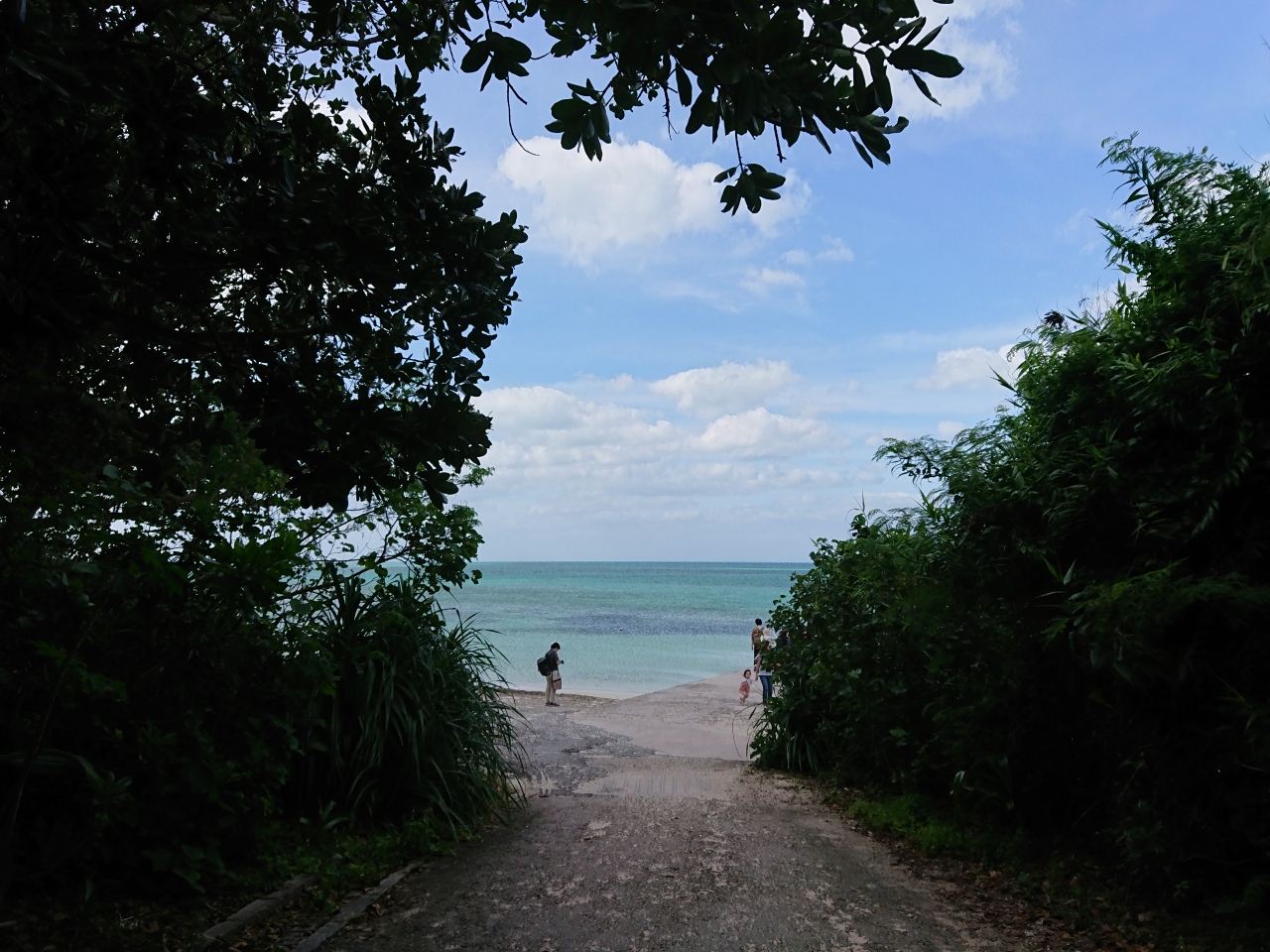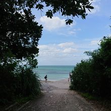 緑のトンネルを抜けると、青空と美しい海とビーチが面前に広がり
