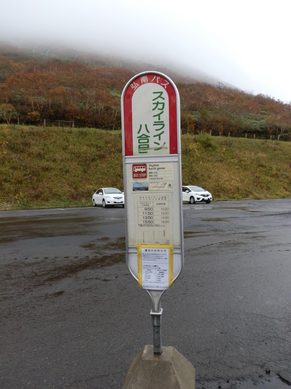 岩木山の8合目(標高1,247m)まで自動車専用道路「津軽岩木スカイライン」が通り、8合目にターミナルがある。路線バスの弘南バスが岳温泉からスカイライン8合目まで走っている。8合目から9合目(標高1,470m)までスキーリフトがあり乗車した。