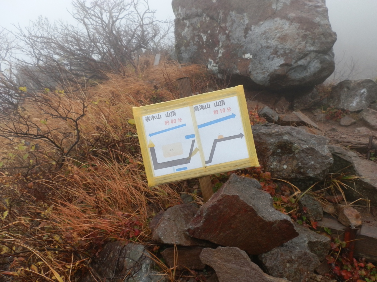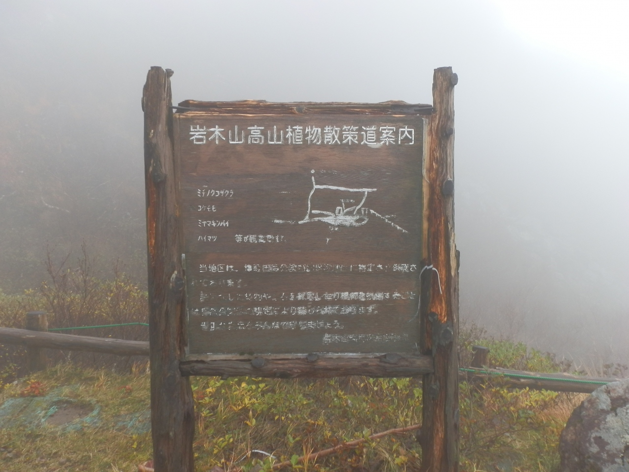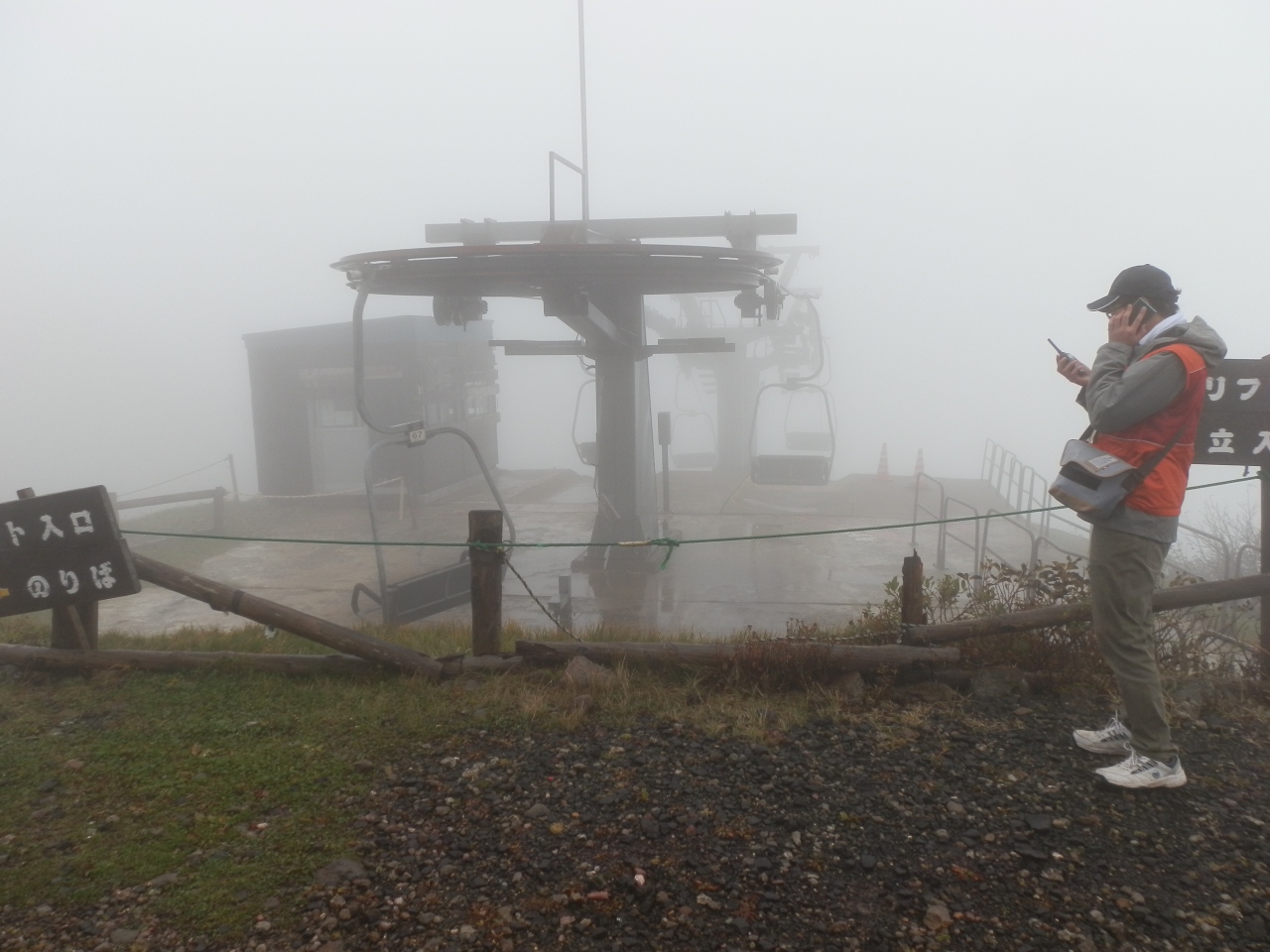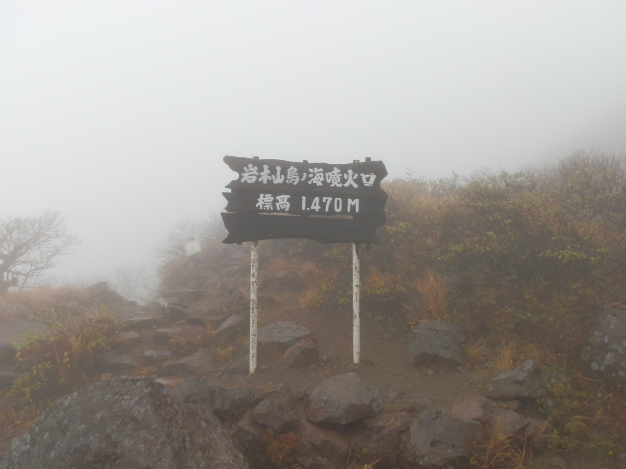 登山は9合目から頂上(標高1,625m)まで、標高差155mを登ります。所要時間は30~40分です。当日は小雨から本降りの為、視界が全然きかなかった。