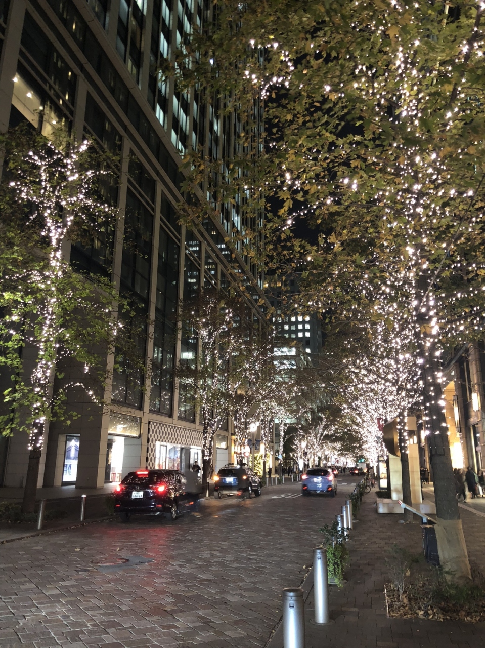 今年もまた恒例のイルミネーションが始まりました。せっかくなので、日比谷あたりから丸ビルまでを散策。通りを挟んで両サイドの木々に取り付けられたイルミネーションは見慣れたとはいえ、とてもきれいです。ここの特徴はやはりその距離にあるかなと。ずっと先まで続くイルミネーションは他ではなかなか見られませんから。やはり圧巻です。唯一駐車車両がどうしても気になります。道路なので車が通るのは仕方ないとしても、けっこう停まっているクルマが多くて、写真撮影にどうしても入ってしまうのが少しばかり残念です。