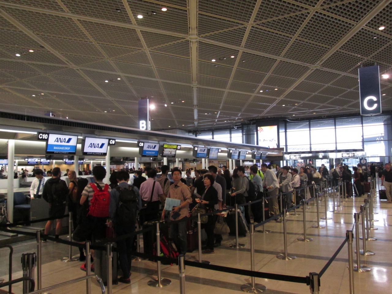 ANA便が成田-プノンペンを就航させた月にその便を早速利用するのに、成田空港第1ターミナルを利用しました。サーチャージ込みで4万円台という日系航空とは思えないぐらいの激安チケットでした。LCCだけでなく、成田空港にも新しい路線が就航していました。その分だけ第1ターミナルは混雑する傾向にあります。