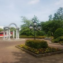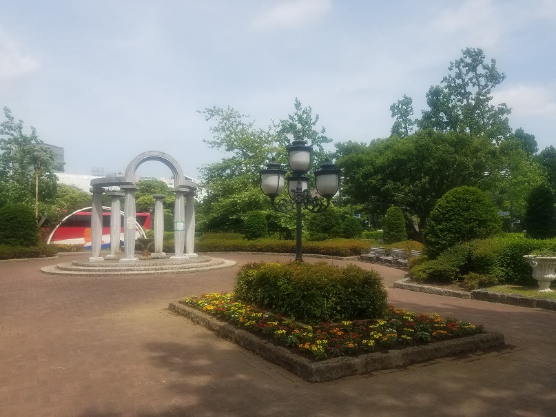 ギリシャかローマの建築のような真ん中が太くなったエンタシスの柱や異様に頭の大きな街灯などが目を引きますが木々や花々も丁寧に手入れされていてふつうにベンチもあるので迎賓館のすぐ近くでのんびりと過ごすことができます。