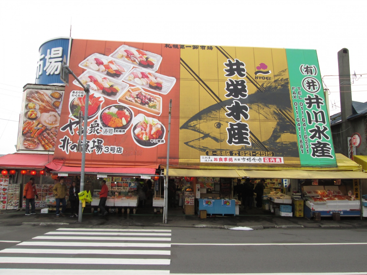 札幌市場場外の海産物店が運営するお店の支店です。海鮮物や北海道名産の商品を扱う土産店で、うに、いくら、かに等の海鮮丼が食べれる食堂も併設されていました。定番の北海道土産を購入するのはここだと思いました、観光客が多いエリアで、中国人と思われる団体客も見かけました。