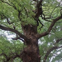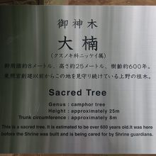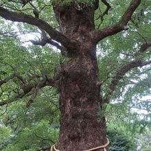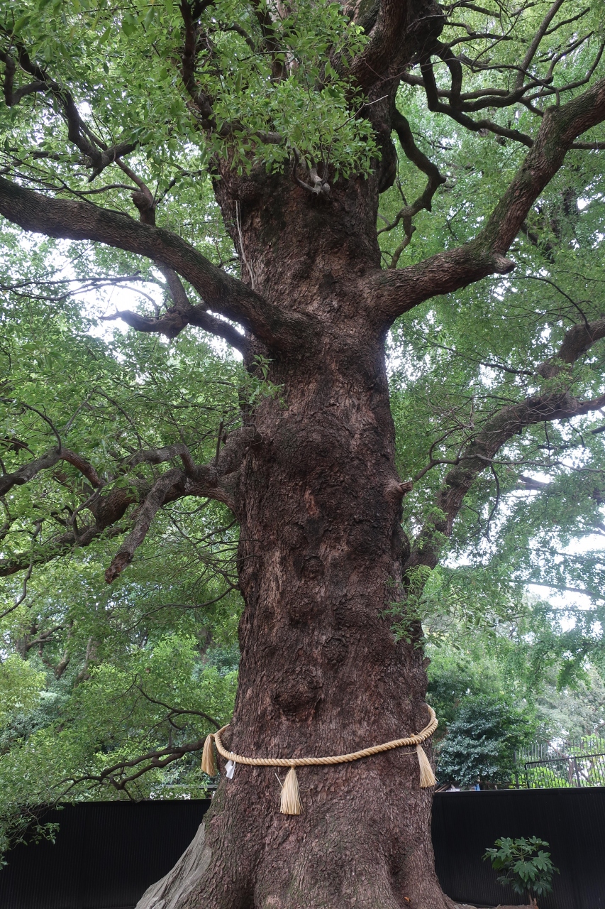 上野東照宮は無料エリアに銅燈籠や唐門等の史跡見えるので社殿を拝観しない人も多いですが、拝観受付して中のエリアに入ると目の前に幹回り8m、高さ25m、樹齢600年と言う見上げてしまうほど大きな楠の大木があります。御神木であり、注連縄が掛けられています。