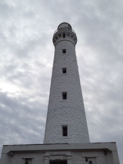白く、高く、そしてとても美しい灯台でした。初めてここを訪れたのですが、日本海に向けて立っているその佇まいに、しばし目を奪われました。上まで登ってみたのですが、その螺旋階段は急でとても疲れました。明治の時代によくこの様な、高い建物を建てたものだと、感心致しました。