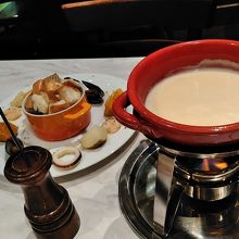 オサカナバル…とあるのでお魚料理がお勧めなのでしょうが、メニューで気に入ったチーズフォンデュを注文しました。自宅ではあまりやらないので、お店でいただけるのが嬉しいです。こちらにも魚介が少し入っています。他にもサラダなどいくつか頼んだのですが、どのお料理もほとんど待たされることなく運ばれてきました。
