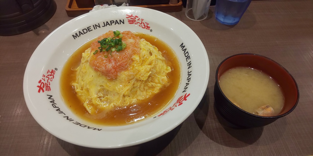 かにのあんかけチャーハンを頼みました。パラパラのチャーハンにふわっとした卵がぴったりでした。みそ汁もかにだしで、すこしかにの臭さがありますが、もちろん味は美味しいです。大盛りにしても1,000円以下と、リーズナブルな価格です。