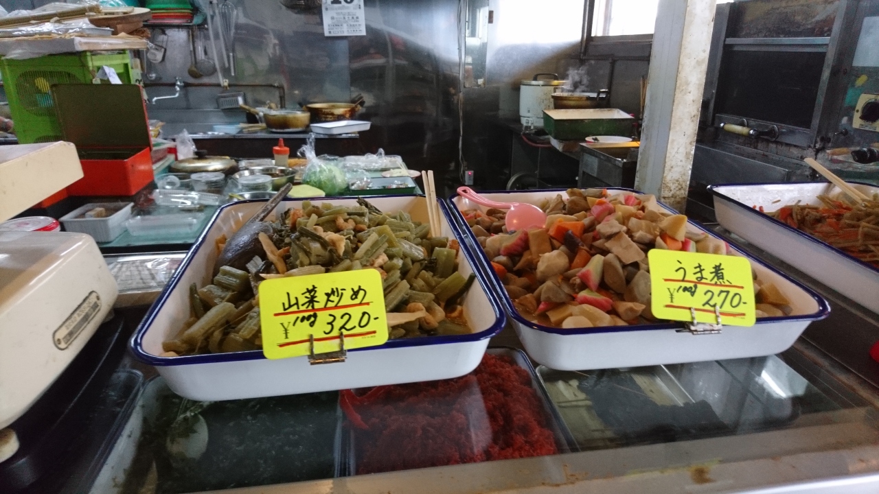 JR名寄駅から歩いて10分かかりりません。名寄中央整形外科病院の前にあります。一応、市場の中に入っていますが、入り口にあるお店です。板場は古く、おかずやさんの先の店がやっているかどうかは、分かりません。昼食をとる時間がないので、どこかファストフード店を探していて偶然見つけました。お店の前には出来立てのおいしそうなおかずが勢ぞろい。揚げ物はもちろん、お店のお母さんが作った煮物や酢の物、赤飯、いなりずしが並んでいます。「ポテトサラダを50グラム」とか少量でも対応してくれるので、いろんなものが味わえました。けっこう人気の店らしく、午後の遅い時間にはおかずが、なくなるという事です。昔懐かしいお店で、母さん手作りの味。最高でした。