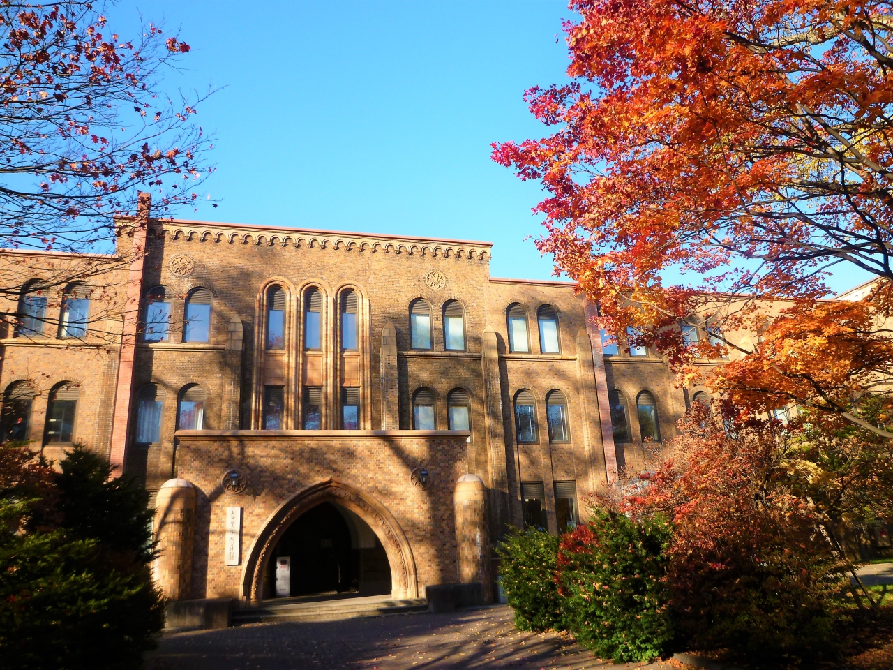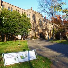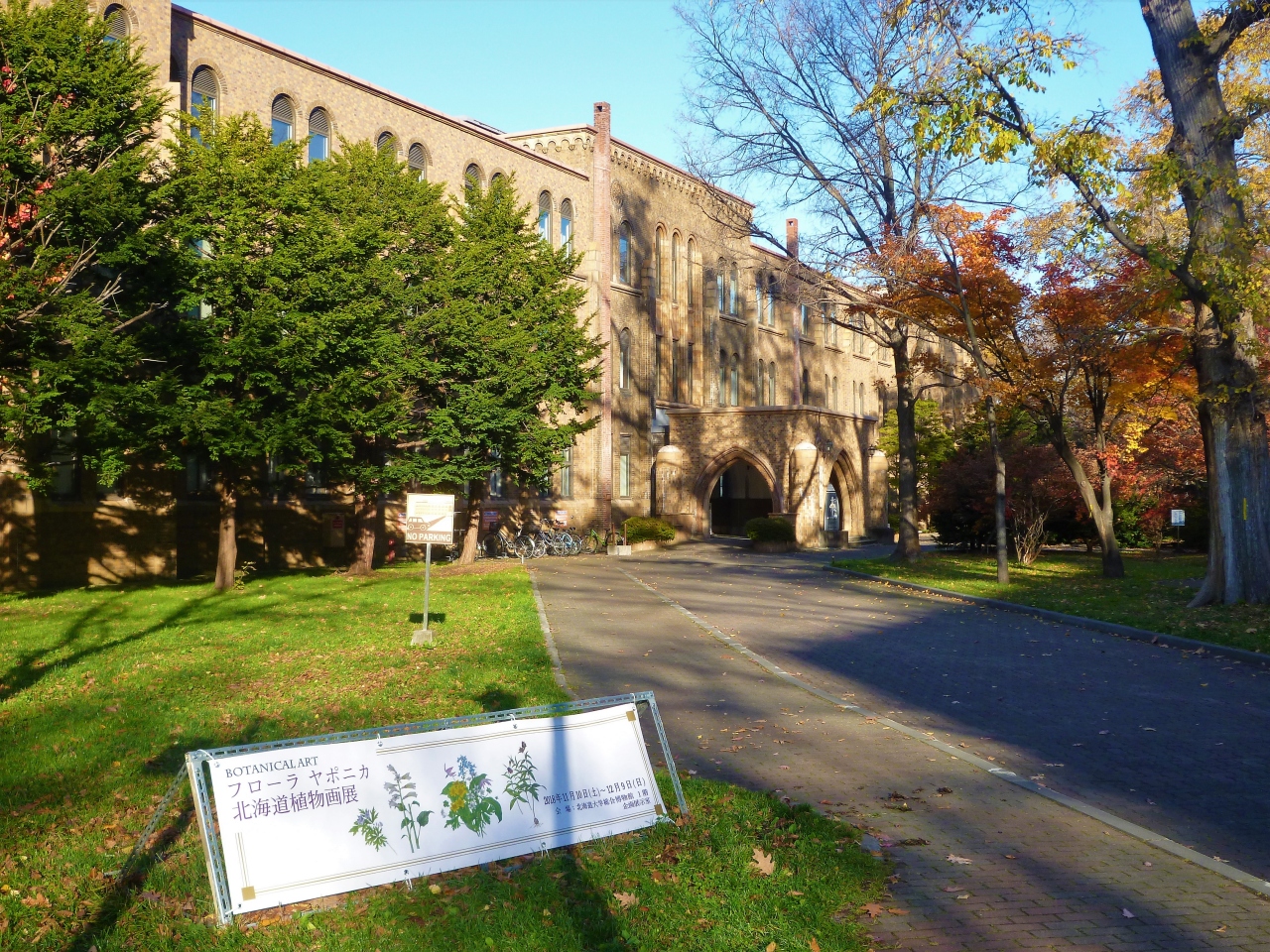 北大観光(?)で午前中に散策しました、当然ポプラ並木を目指して歩くと途中に`モダーン・ゴシック風建物`(調べました;旧理学部本館)の[北海道大学総合博物館]がありました。青空と紅葉の木々にアーチ門/∩字の窓枠が印象的でした。アーチ門に入って見ましたが(無料!)、朝早くだったので業者の人と挨拶して`ウッドデッキ`をチョッと(^^)