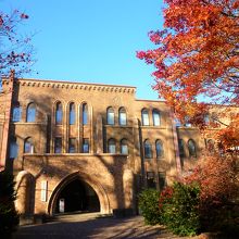 青空と紅葉の木々に`モダーン・ゴシック風建物`