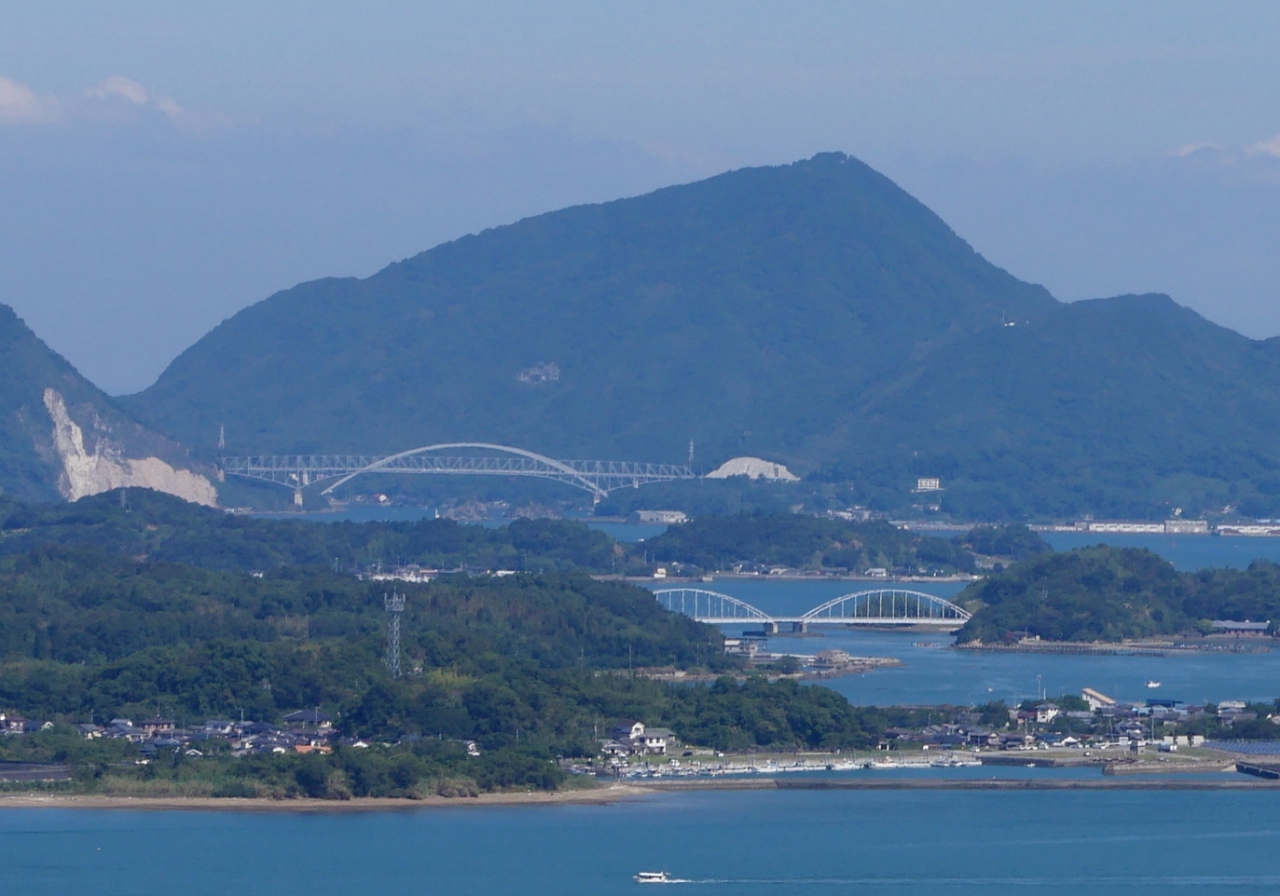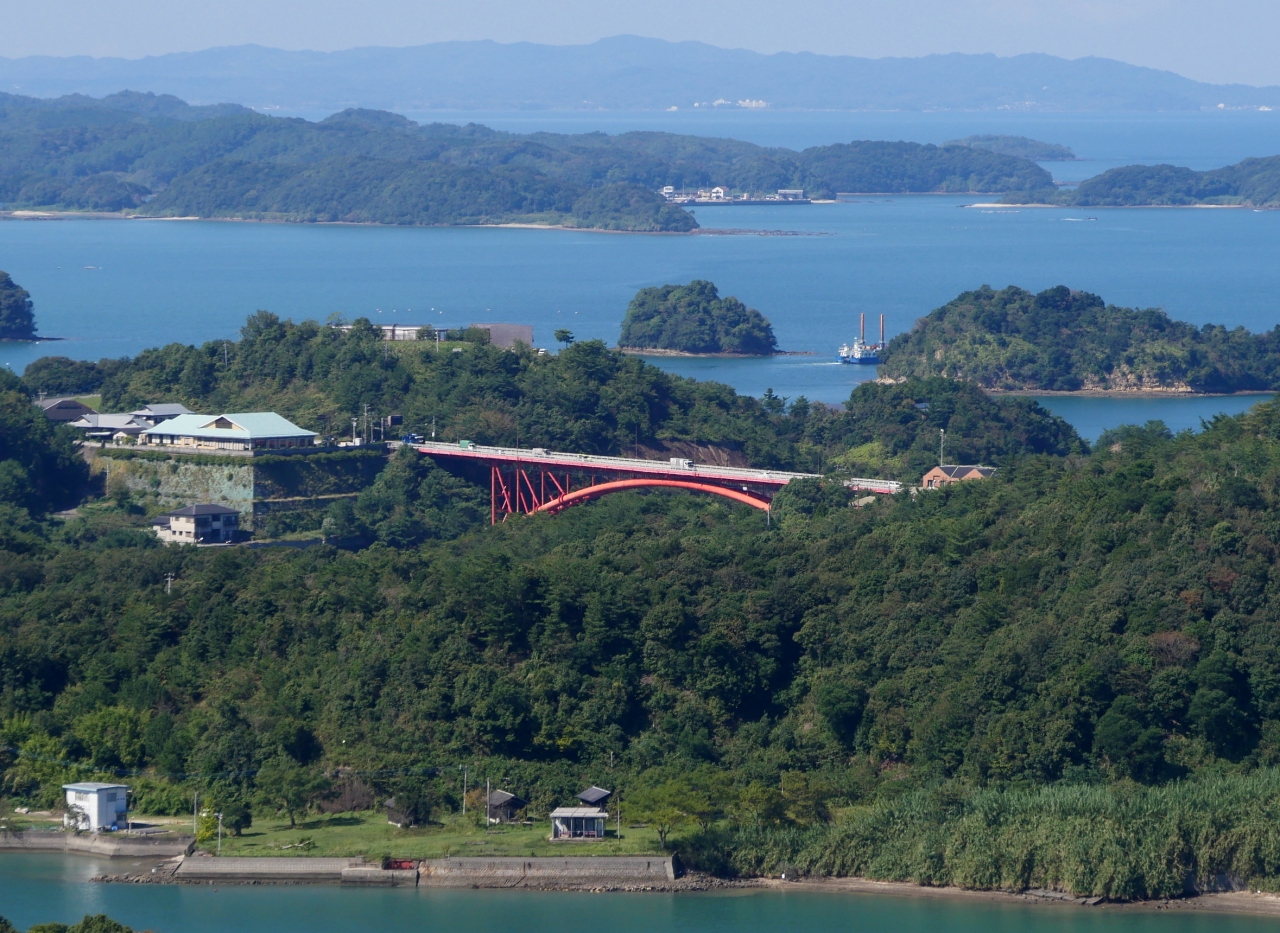 ここは1号橋から5号橋まですべて見える さらに東西の大維橋,雲仙,宇土半島,松島や他の島々などがとてもよく見えた.ここは最高だね.駐車場からわずか100mだし.ただ車での道は結構細くて急坂があるので,対向車等注意は必要だ.