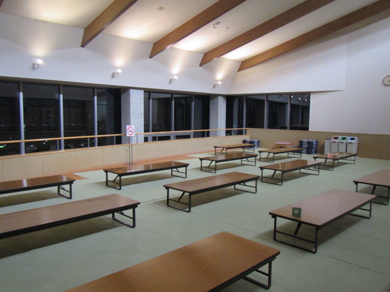 浜中の街の景色は、露天ばかりでなく、休憩スペースのラウンジからも眺められます。