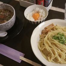 あごだしつけ麺を注文。卵かけごはんが付いてきます。極太麺とお出汁との相性も良く、美味しく頂きました。ただ、太麺の割りに、サーブがかなり早く、麺は予め下茹でしてあるのか、少し柔らかめでした。