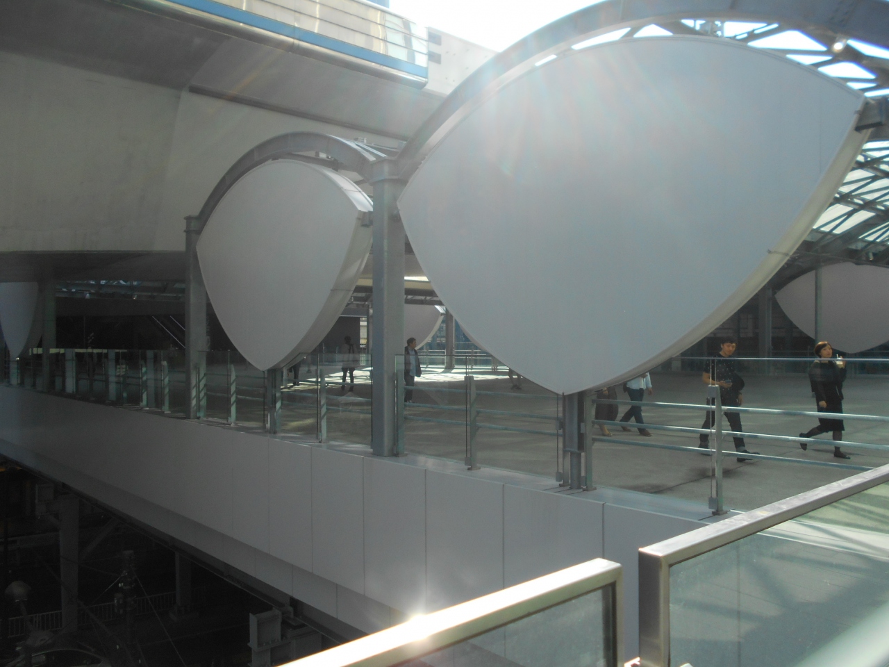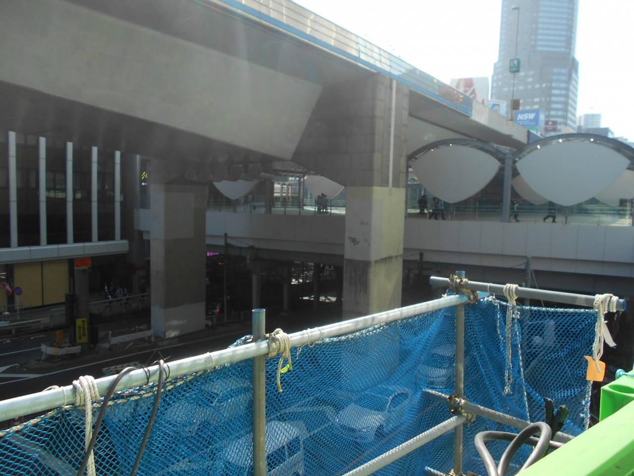 渋谷駅からの接続部分の工事は完了していないが東横線ホームの特徴的な壁の一部が再現され、懐かしい。この屋内通路の下は、国道246号線。上空の首都高の橋は、東京オリンピック前に突貫工事でヤジロベーのようなデビダーク工法で架けられた道路橋。