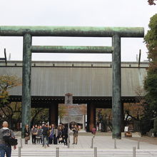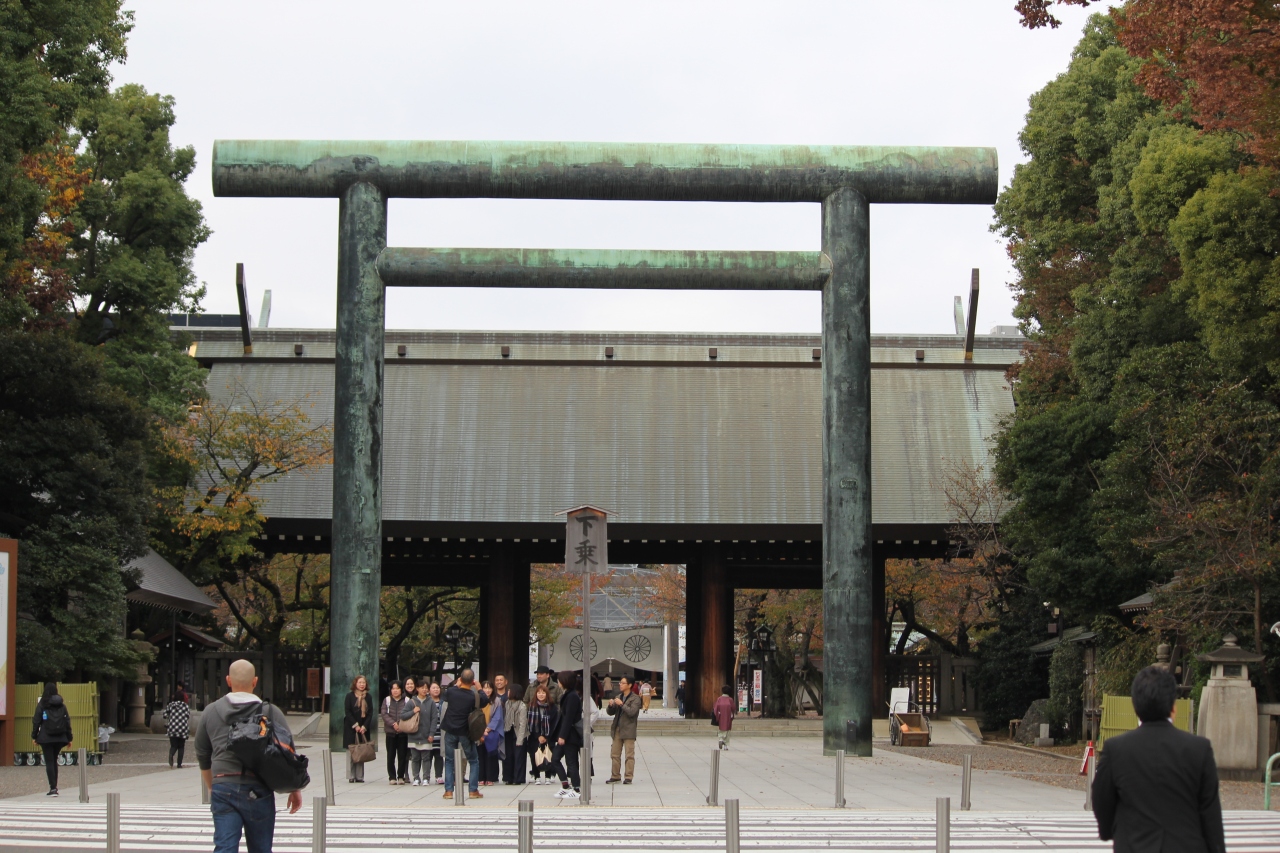 11月の休日、地下鉄の九段下駅で降りて北の丸公園靖国神社を散策しました。第一鳥居を抜けて靖国神社の境内に入りました。真っ直ぐに進み木村益二郎の像を過ぎると大きな鳥居があります。青銅製の鳥居として日本一の大きさを誇る鳥居です。
