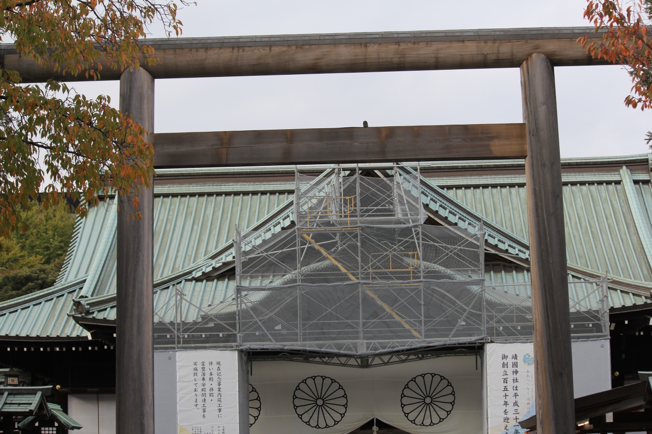 11月の休日、地下鉄の九段下駅を降りて靖国神社にお参りに行きました。何回か靖国神社へはお参りに行っていますが今回は時間をかけてゆっくり境内を散策しました。第一鳥居を抜けて境内に入り各種の像等を見てから拝殿をお参りしました。本当に気が引き締まりました。