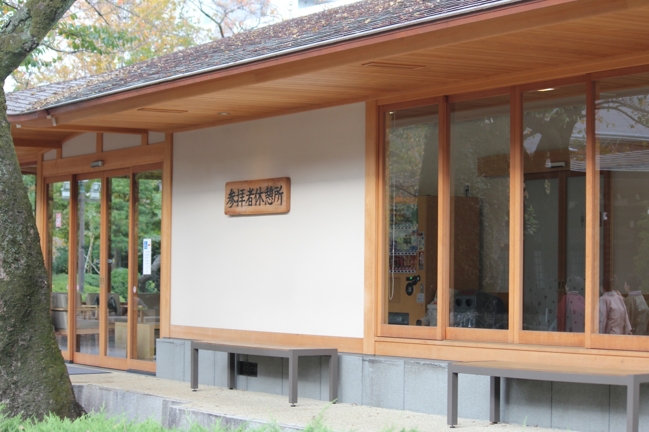 11月の休日、地下鉄の九段下駅を降りて靖国神社へお参りに行きました。第一鳥居を抜けて靖国神社の境内に入りました。神門を抜け中門鳥居を通り拝殿でお参りしました。沢山歩いたので一休み。参拝者の無料休憩所があったので中にに入り一休み。飲み物の自動販売機もあります。