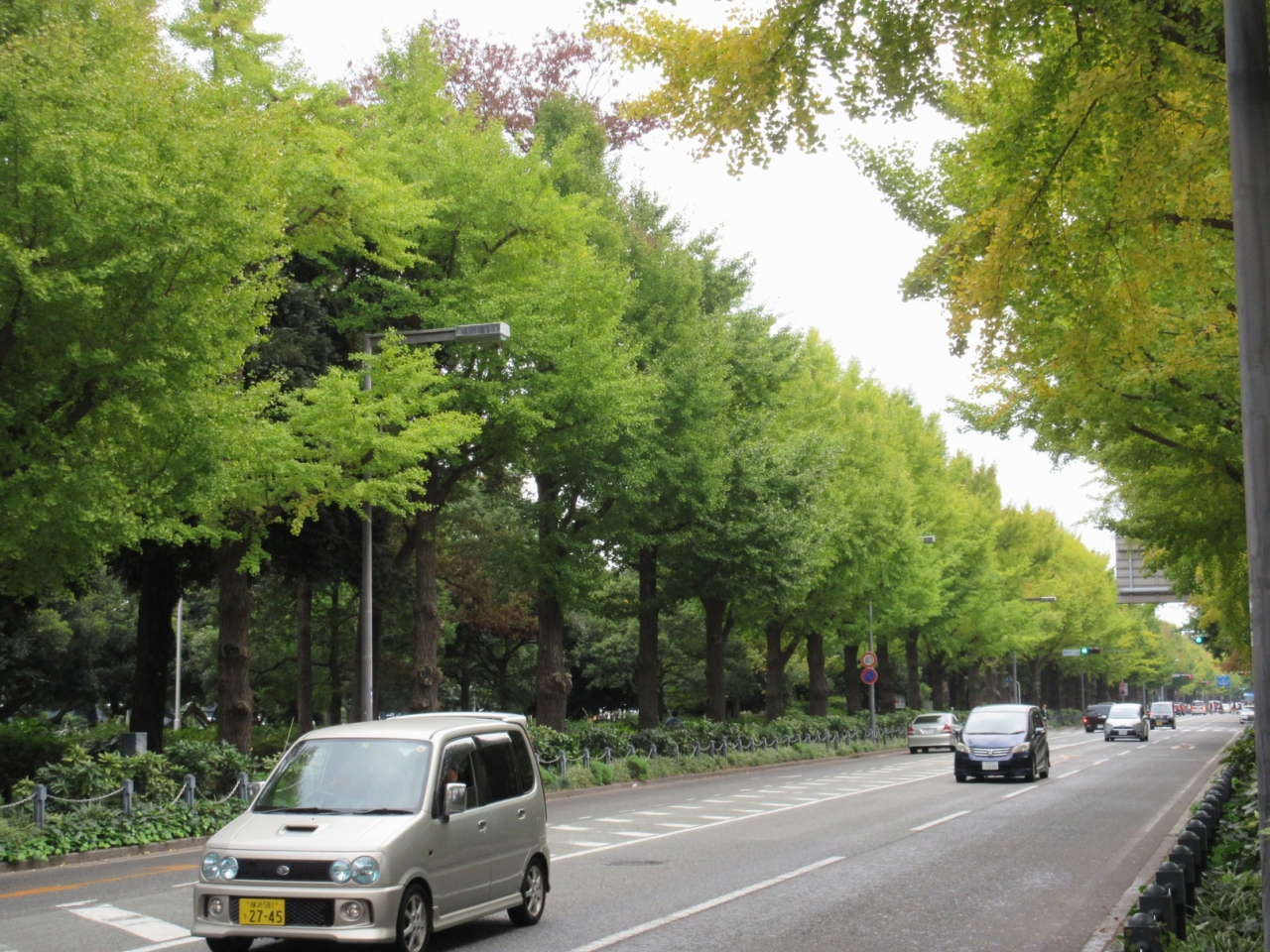道路の両側が整然としたイチョウ並木