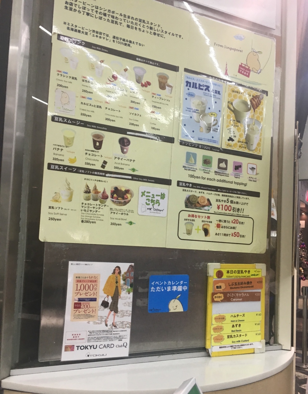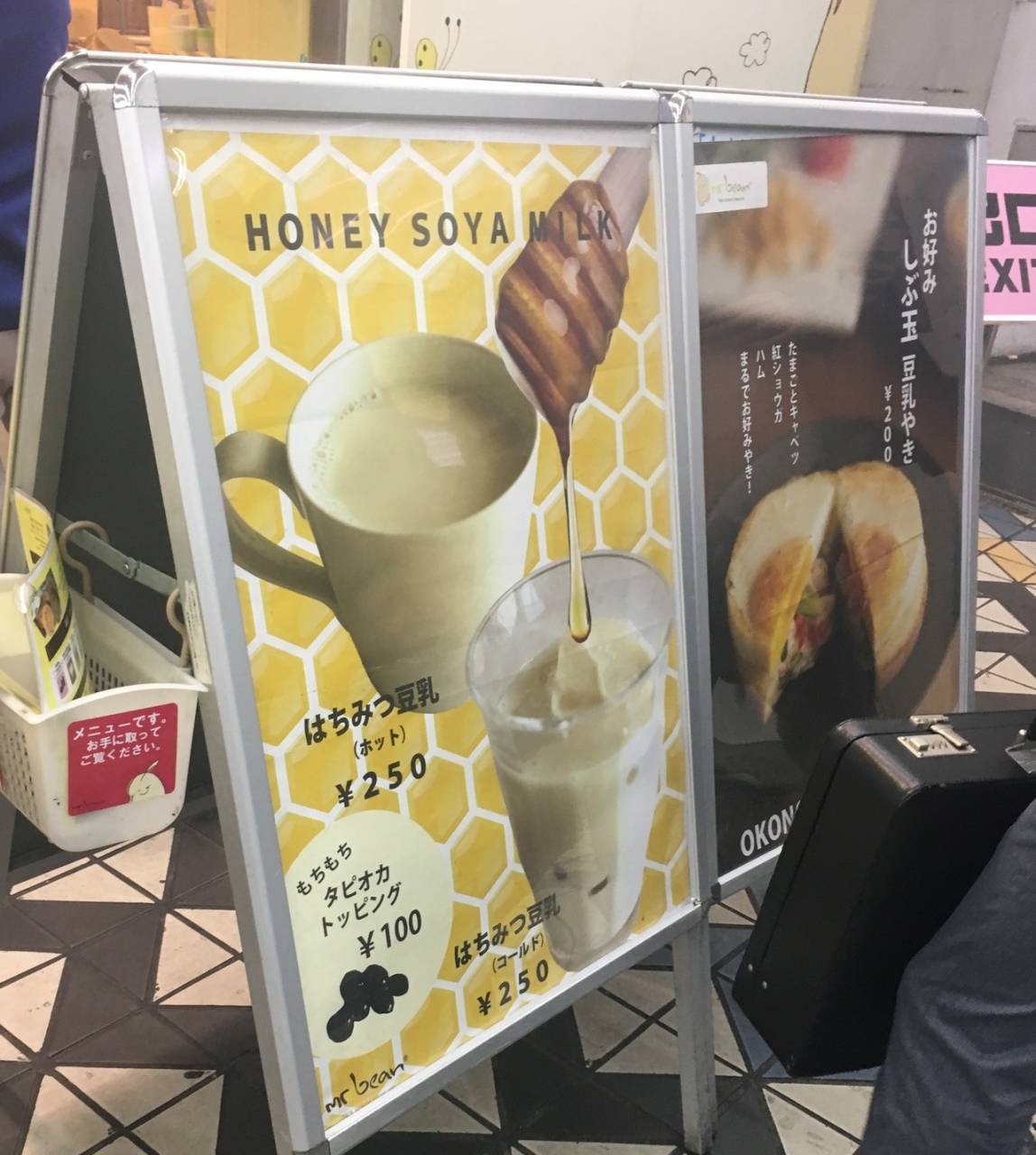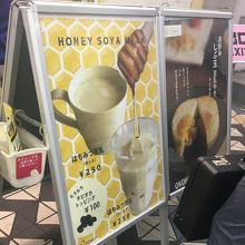 渋谷駅内にあるテイクアウトショップです。豆乳を使ったドリンクやスイーツがいただける珍しいお店です。テイクアウトのみで座ってゆっくりとはできませんが、電車に乗る前にサクッと飲食できなにかと助かります。はちみつ豆乳のホットを注文しました。