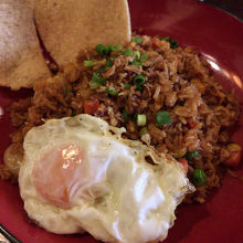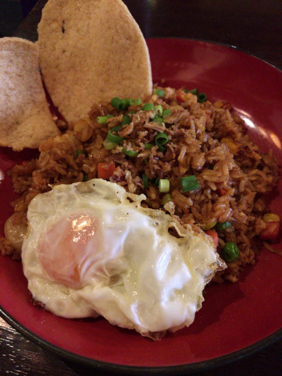 ランチタイムに訪問しました。ナシゴレンをオーダーしました。目玉焼きがよいアクセントになっています。