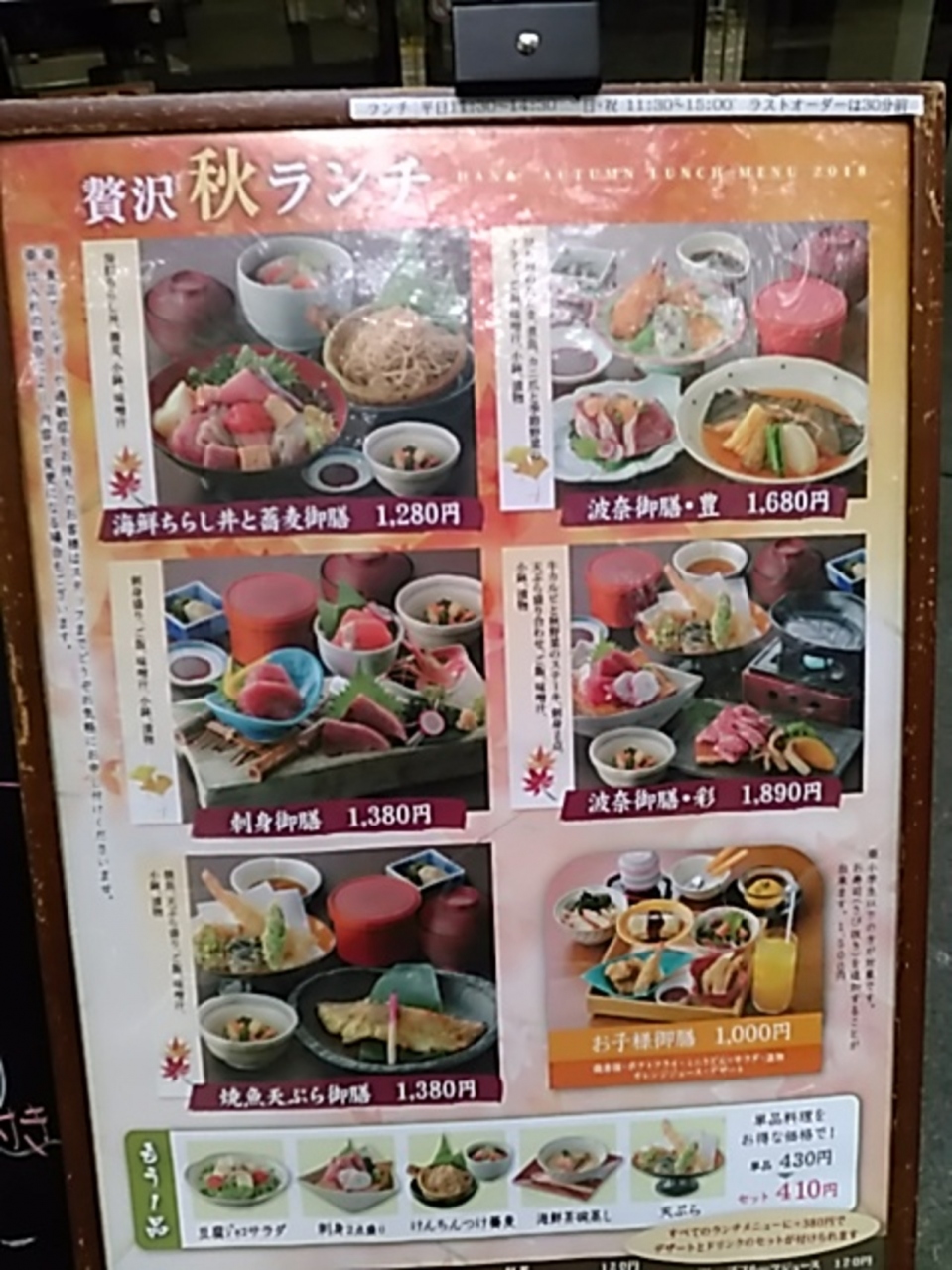 (和食波奈)全般的に値段高めですが、ランチは870円からあります。