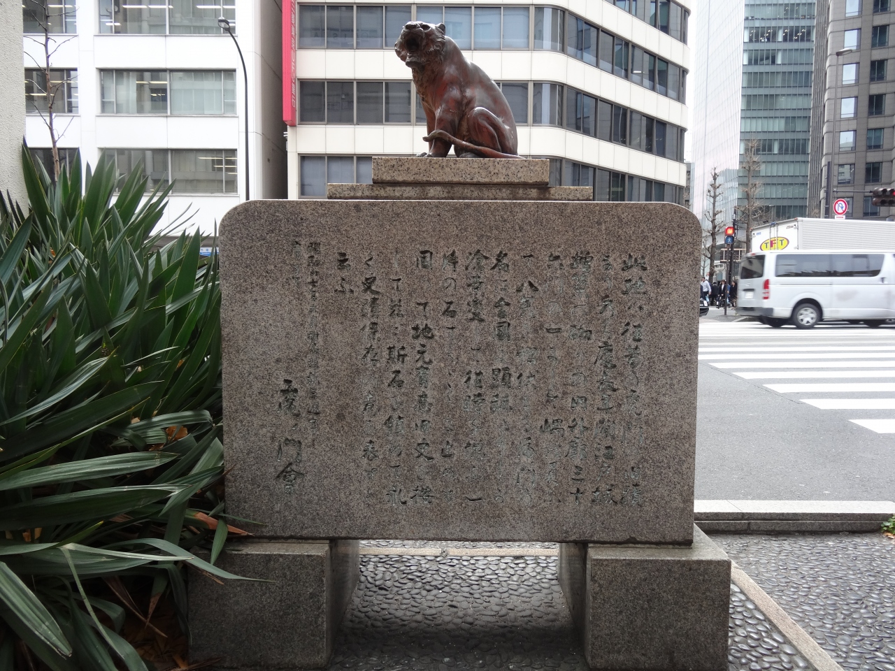 「虎ノ門」は、江戸城の南端にあった門の名前ですが、門の形跡はありません。