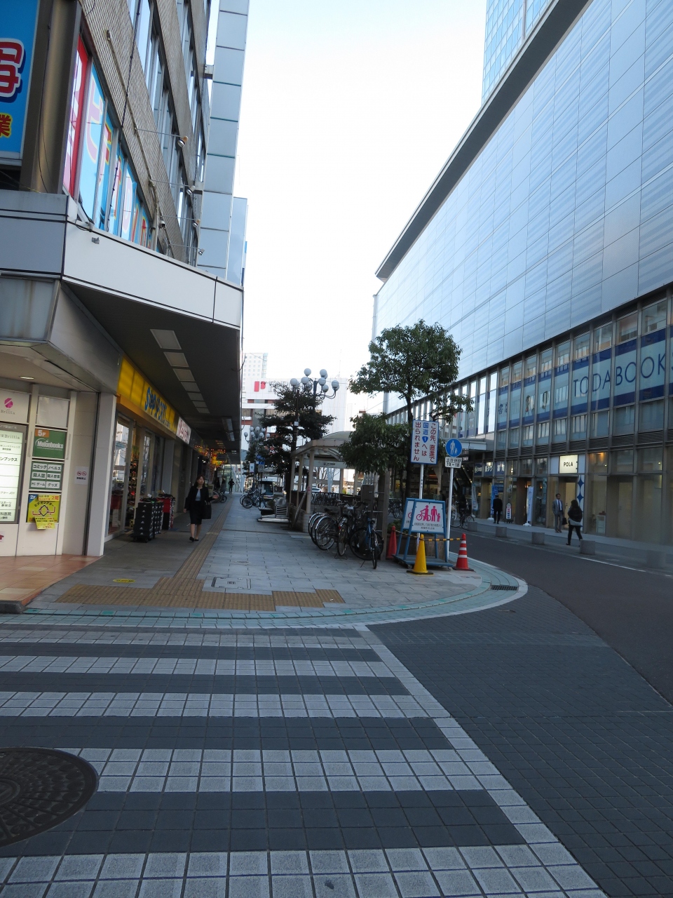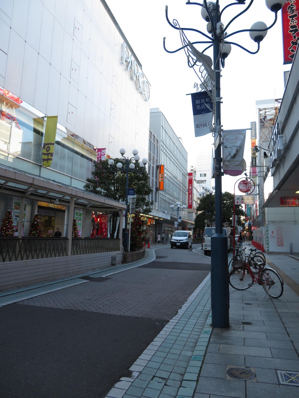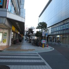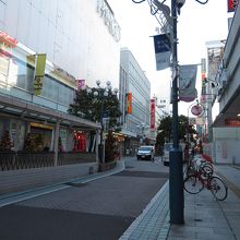 駅から徒歩数分のショッピングストリートです、両側にファッションビルやショップが並びますが、一見、歩行者天国?と思えますが、車は通ります。