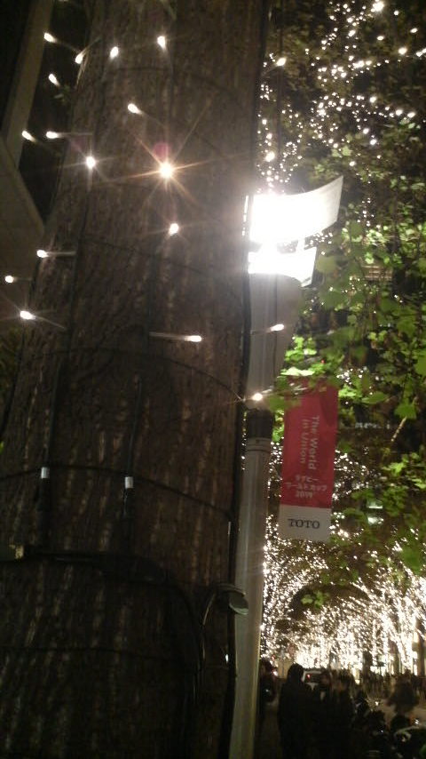まだ11月半ばというのに、毎年恒例となっている仲通りのイチョウ並木のライトアップや、丸ビル、MY PLAZA館内のクリスマスツリーなど今年もあちこちで派手な演出が行われていて、一足早いクリスマス気分を味わえました。